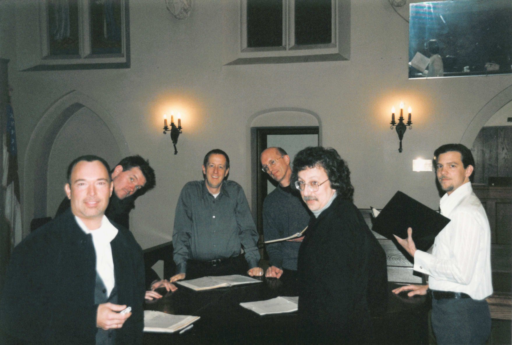 Sometime shortly after the turn of century, six members of the San Francisco Concert Chorale - tenors Tim Jones, Steve Peace, Scott Wood and basses Allen Foster, Rick Rosen, Peter Sargent - got together for pizza & beers and to explore the idea of a new male a cappella-oriented singing future. These eating, drinking, and thinking sessions ultimately resulted in the formation of the San Francisco-based first iteration of Cordus Mundi.